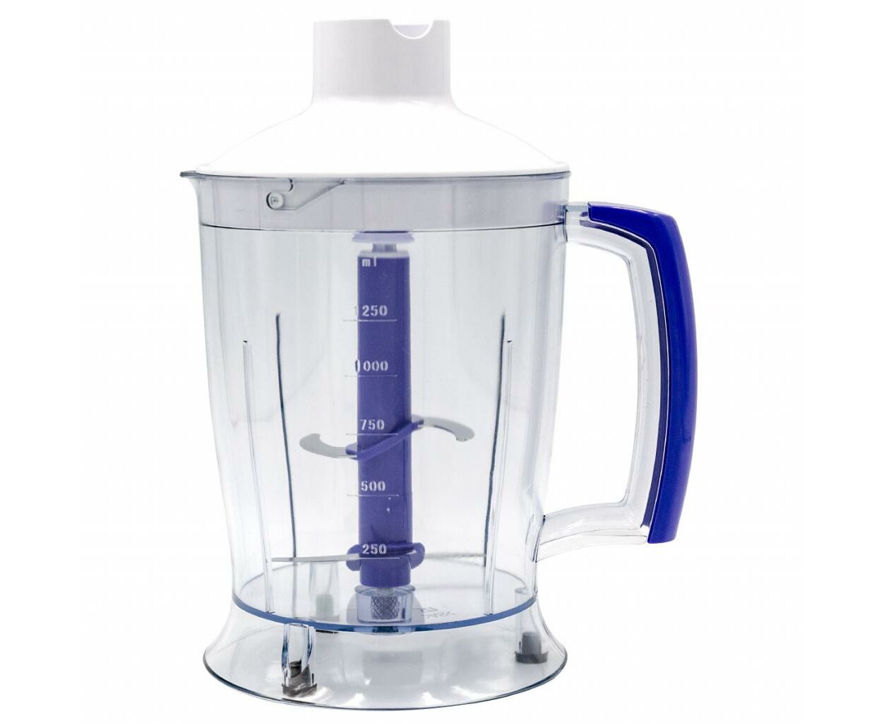 В комплекте также имеется мерный стакан объемом 0.6 л, который идеально подходит для точного дозирования ингредиентов. Ёмкость измельчителя на 1250 мл позволяет работать с большими объемами продуктов, что особенно удобно при приготовлении блюд для всей семьи.