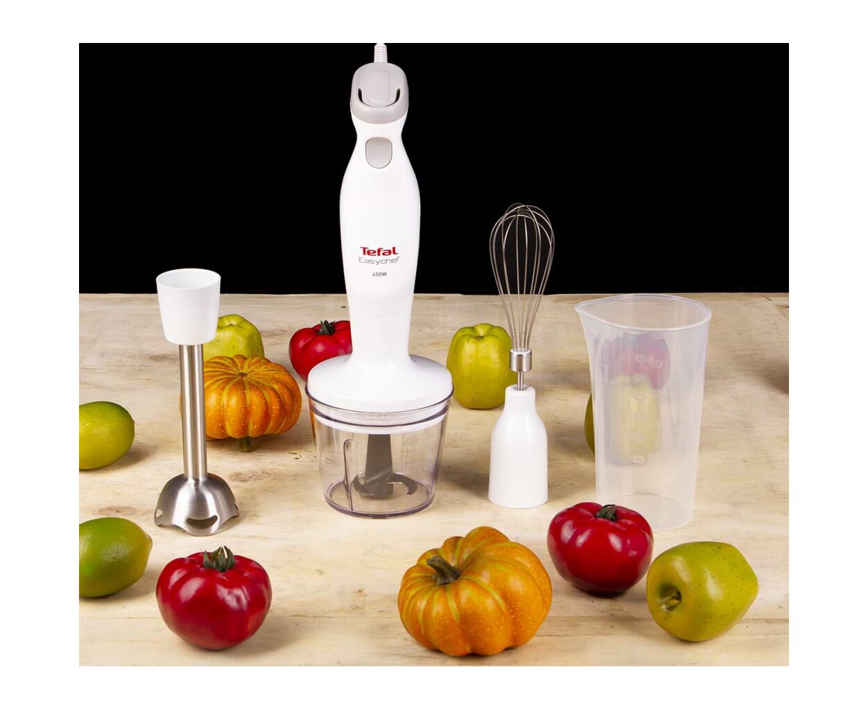 Tefal HB453138 покоряет своим современным дизайном. Прочный пластиковый корпус в стильных бело-серых тонах прекрасно впишется в любую кухню. Металлическая ножка блендера не только устойчива к перепадам температур, но и обеспечивает большую долговечность, сохраняя свой вид на протяжении долгого времени.