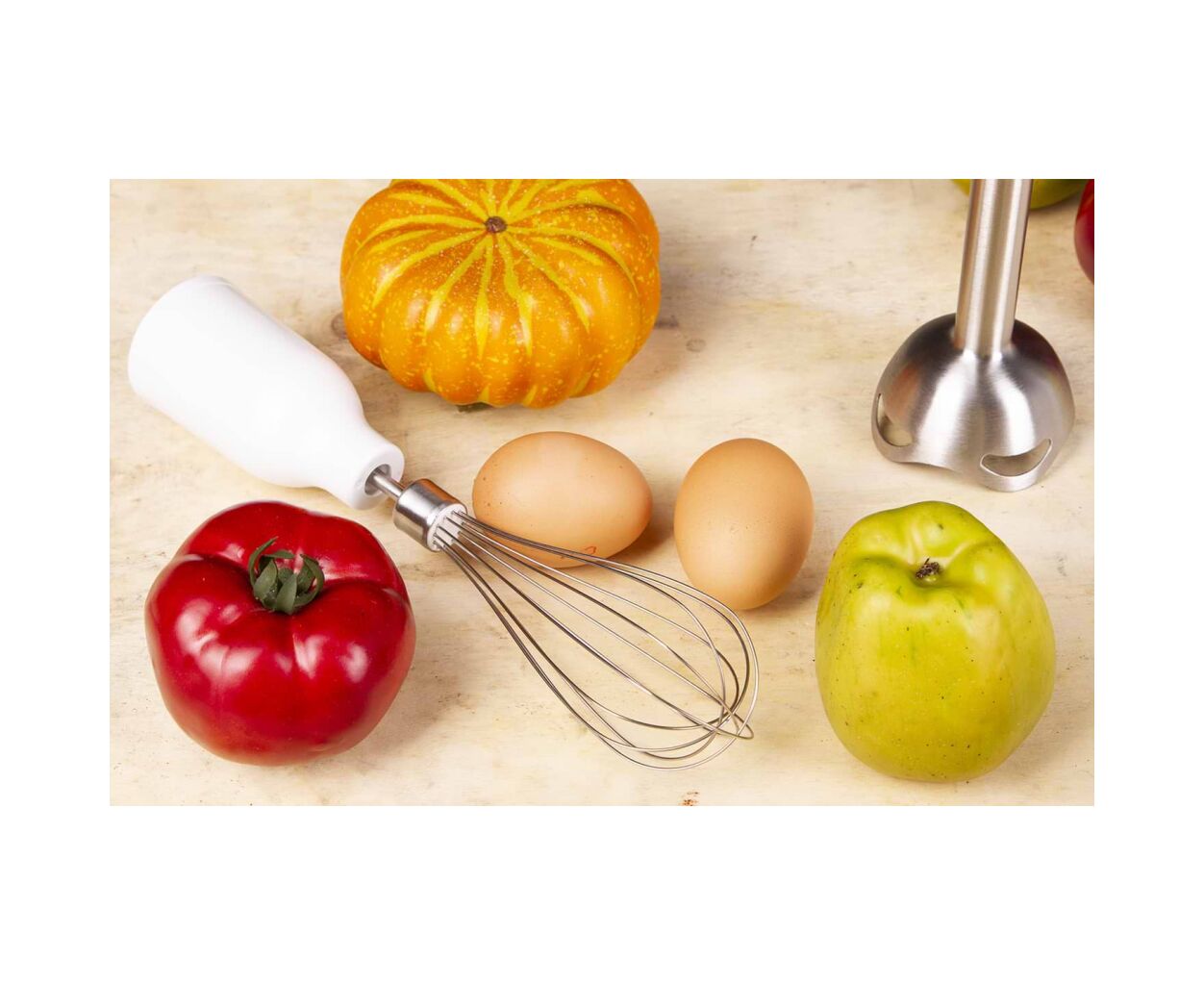Благодаря мощности 450 Вт и наличию двух скоростей, вы сможете легко адаптировать его работу к разным задачам. Не важно, нужно ли вам нежно взбить белки или быстро измельчить овощи для гарнира — этот блендер выполнит это в мгновение ока. Дополнительная функция турборежима пригодится, когда необходимо максимально интенсивно измельчить ингредиенты или смешать их до идеальной консистенции.