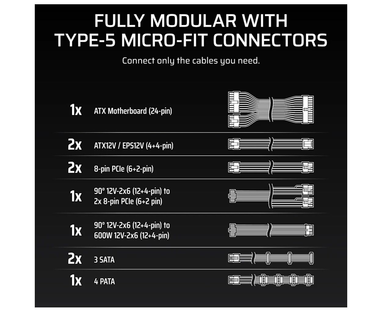 ATX, 750 Вт, CPU - 4+4pin, GPU - 2x(6+2pin), 1х16pin (Gen 5), SATA - 6, Peripheral - 4, +12V1 - 62.5A, 1x140 мм, 160 х 150 х 86 мм