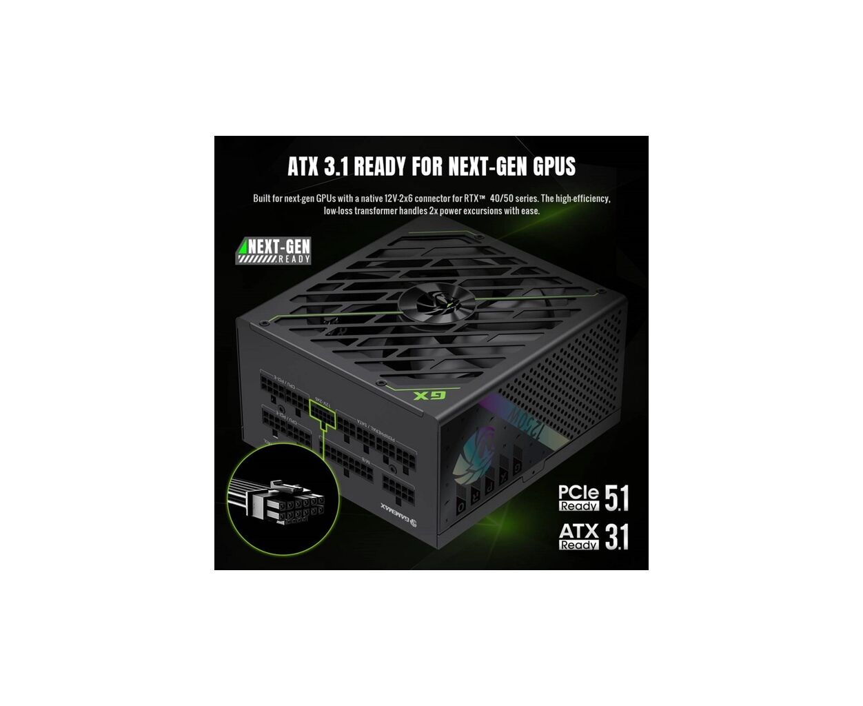 • Готов к ATX3.1 и PCIe5.1: имеет встроенный разъем 12V-2x6 для бесперебойной совместимости с видеокартами RTX 40/50 и эффективного питания.
