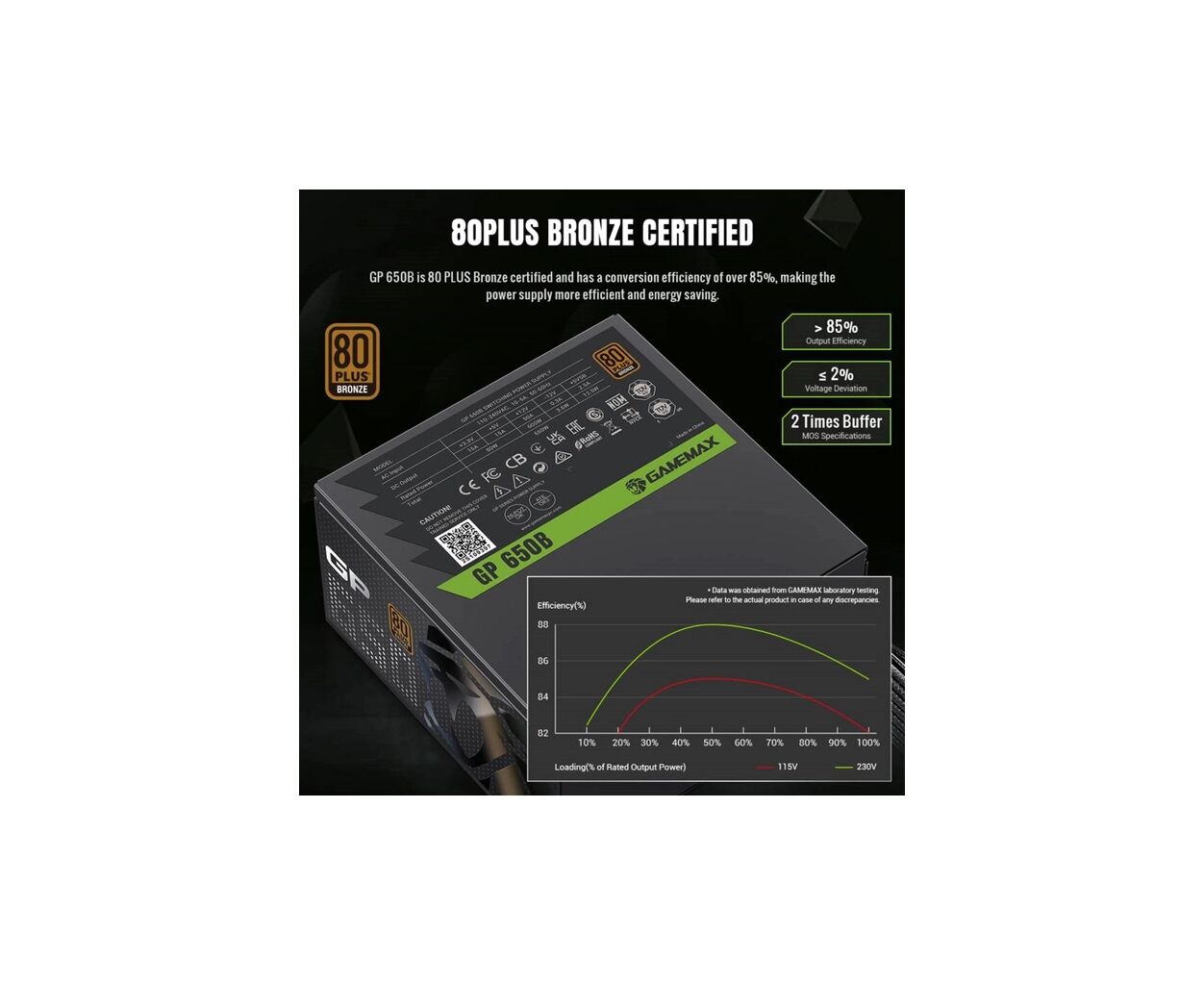 Ультрастабильный блок питания GAMEMAX GP 650B 80+ Bronze с двойным управлением постоянного тока, интеллектуальным вентилятором и премиальным теплорассеянием.