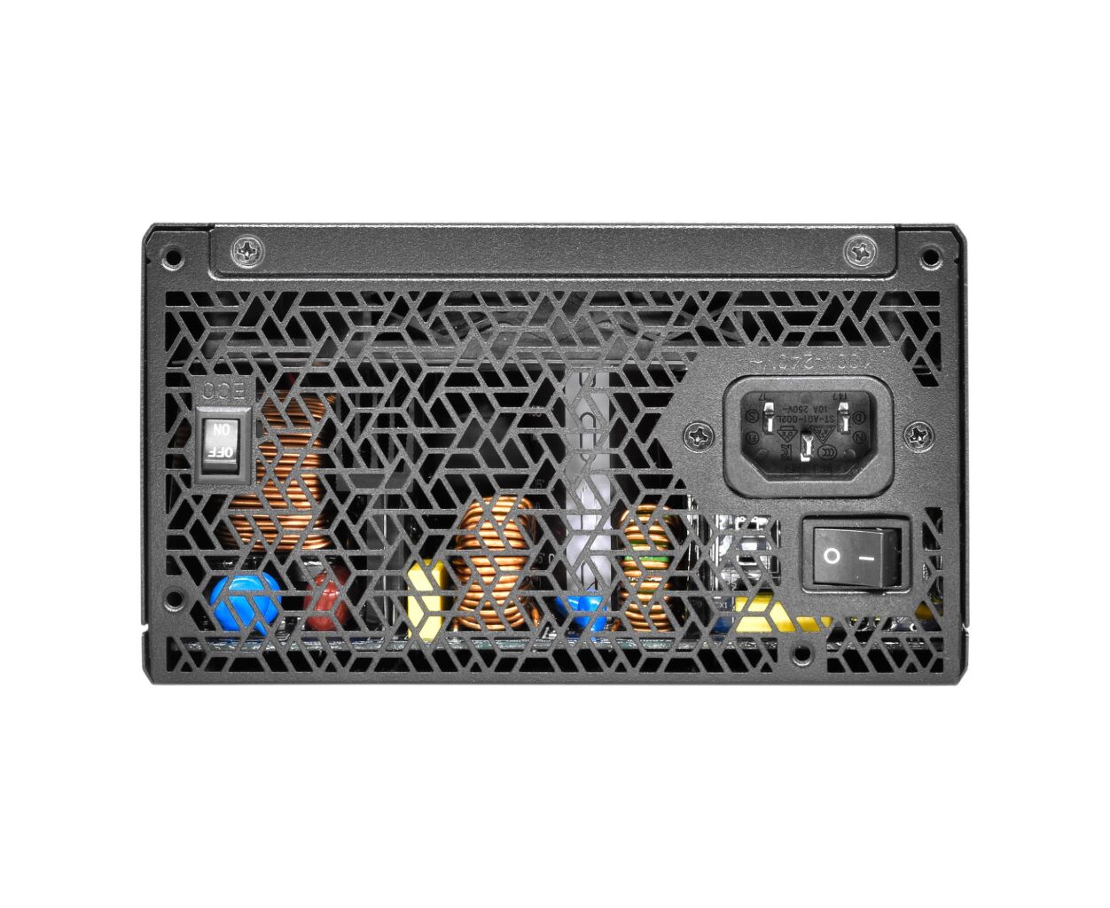 В основі блока живлення — сучасна DC-DC архітектура, яка гарантує стабільну напругу на всіх лініях живлення навіть при різких змінах навантаження. Використання високоякісних японських конденсаторів, розрахованих на температуру 105 °C, забезпечує надійність і тривалий термін служби. Інтегрований режим ALPM (Advanced Low Power Mode) оптимізує енергоспоживання, зменшуючи втрати енергії та підвищуючи загальну ефективність системи.