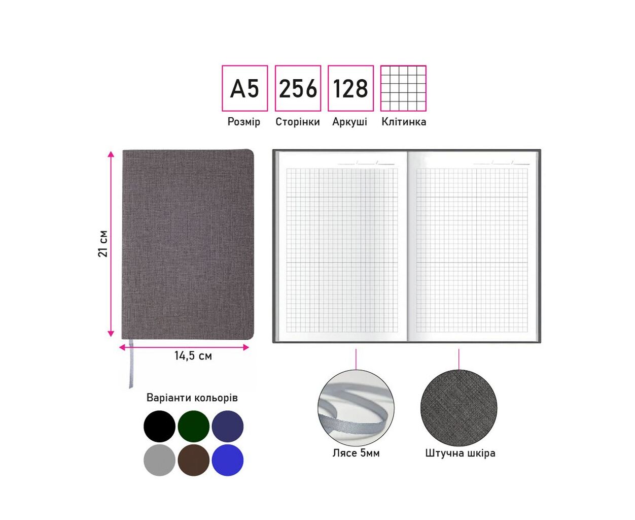 Характеристики Блокнот Berganote Tessil А5, серый (50040538-07)