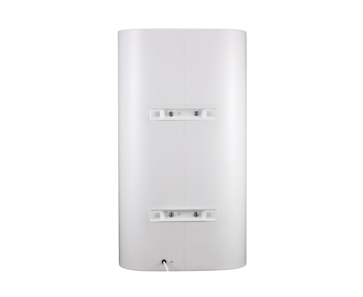 Форма бойлера - прямоугольная, настенный, установка - вертикальная, объем - 80 л, тип ТЭНа - сухой, количество ТЭНов - два, 2000 Вт, тип управления - электронное, титаново-кобальтовая эмаль, температура нагрева - 75 °С, высота - 970 мм, ширина - 530 мм, глубина - 310 мм, вес - 29.6 кг, белый