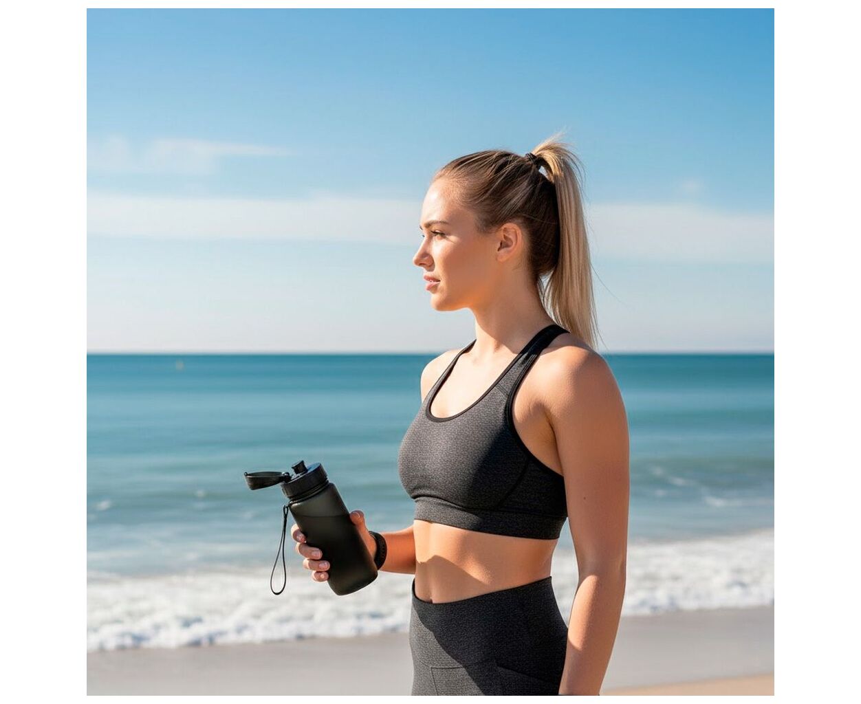 Крышка оснащена кнопкой с фиксатором, что предотвращает случайное открытие при транспортировке. Пластиковый носик с откидной защитной крышкой обеспечивает гигиеничность и удобство во время использования. Матовое покрытие корпуса обеспечивает приятное тактильное чувство и стойкость к царапинам. Оснащена прочным встроенным нейлоновым ремешком для комфортного ношения. Благодаря широкому горлышку бутылка легко моется и быстро наполняется.