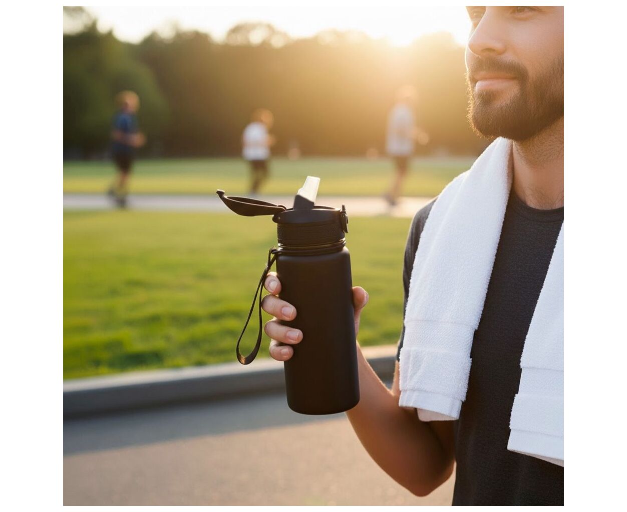 Благодаря широкому горлышку бутылка легко моется и быстро наполняется. Матовый корпус приятен на ощупь, устойчив к царапинам и обеспечивает удобное удержание. Ремешок позволяет комфортно носить бутылку, а карабин закрепить на рюкзаке или сумке.