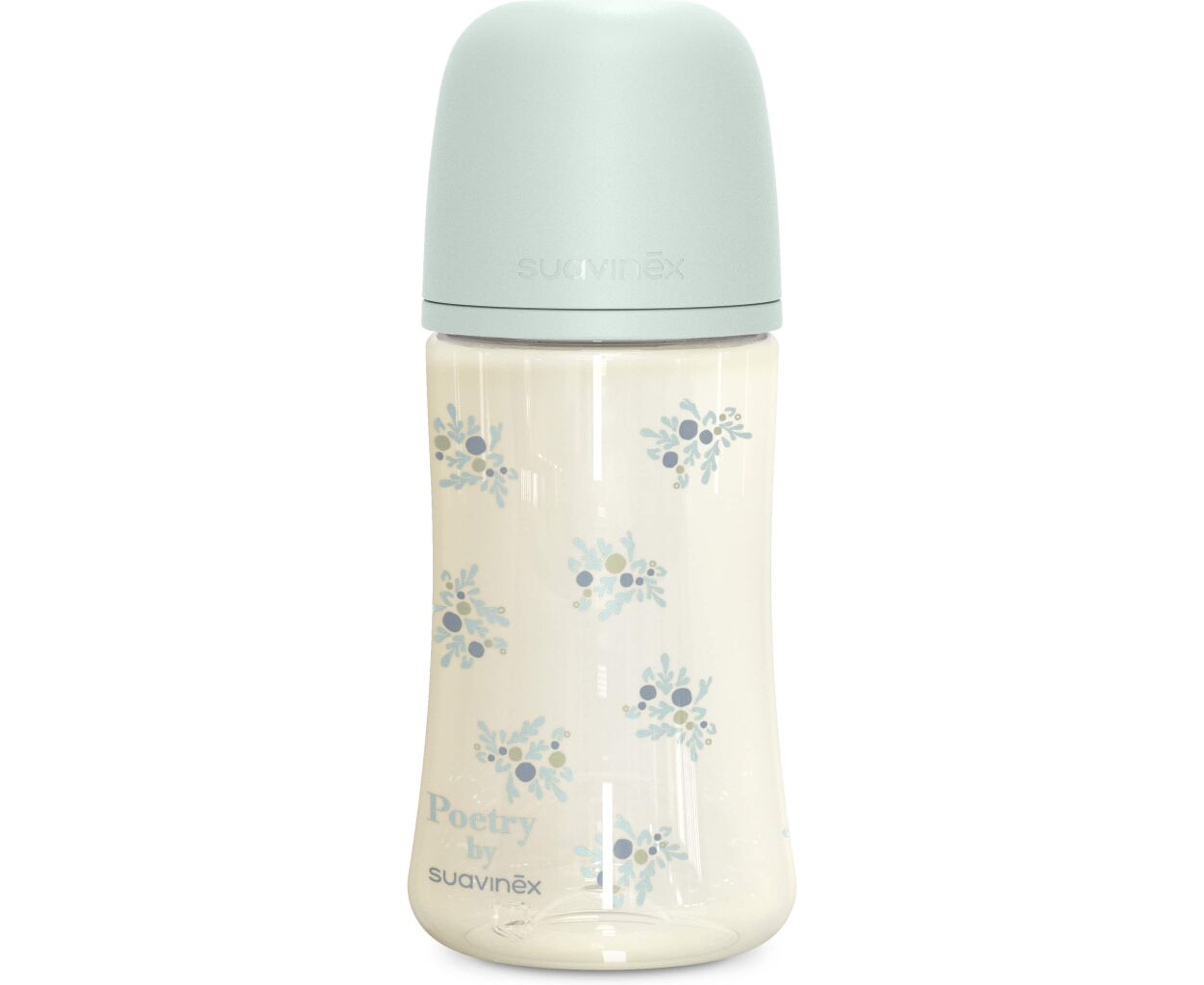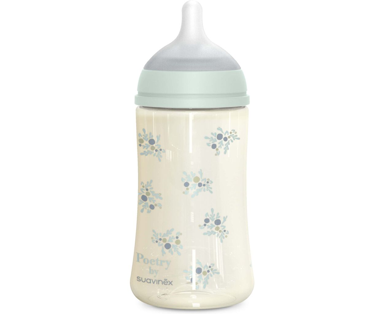 Описание Бутылочка для кормления Suavinex Poetry, 270 мл, фізіологічна соска середній потік, м'ятна (308970)