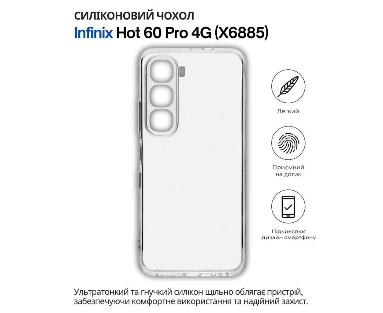 Описание Чехол для мобильного телефона BeCover Silicone Infinix Hot 60 Pro 4G (X6885) Transparent (714559)
