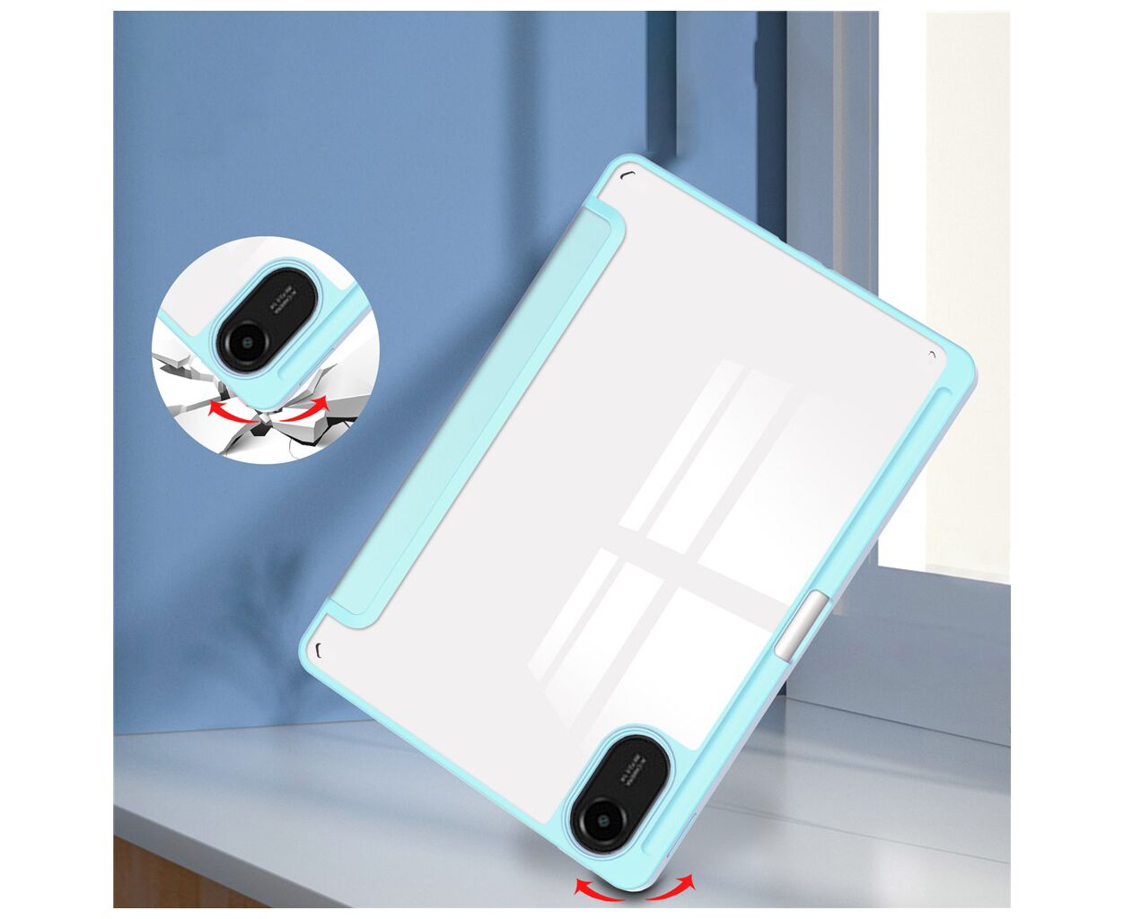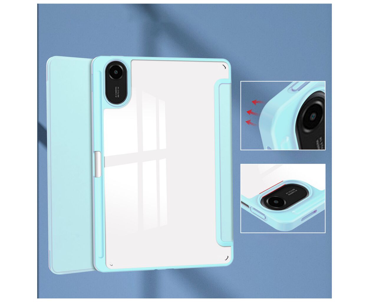 диагональ - 11, Материал - Міцний і зносостійкий корпус із ТПУ. Прозора задня панель підкреслює стиль і зберігає автентичний вигляд планшета.