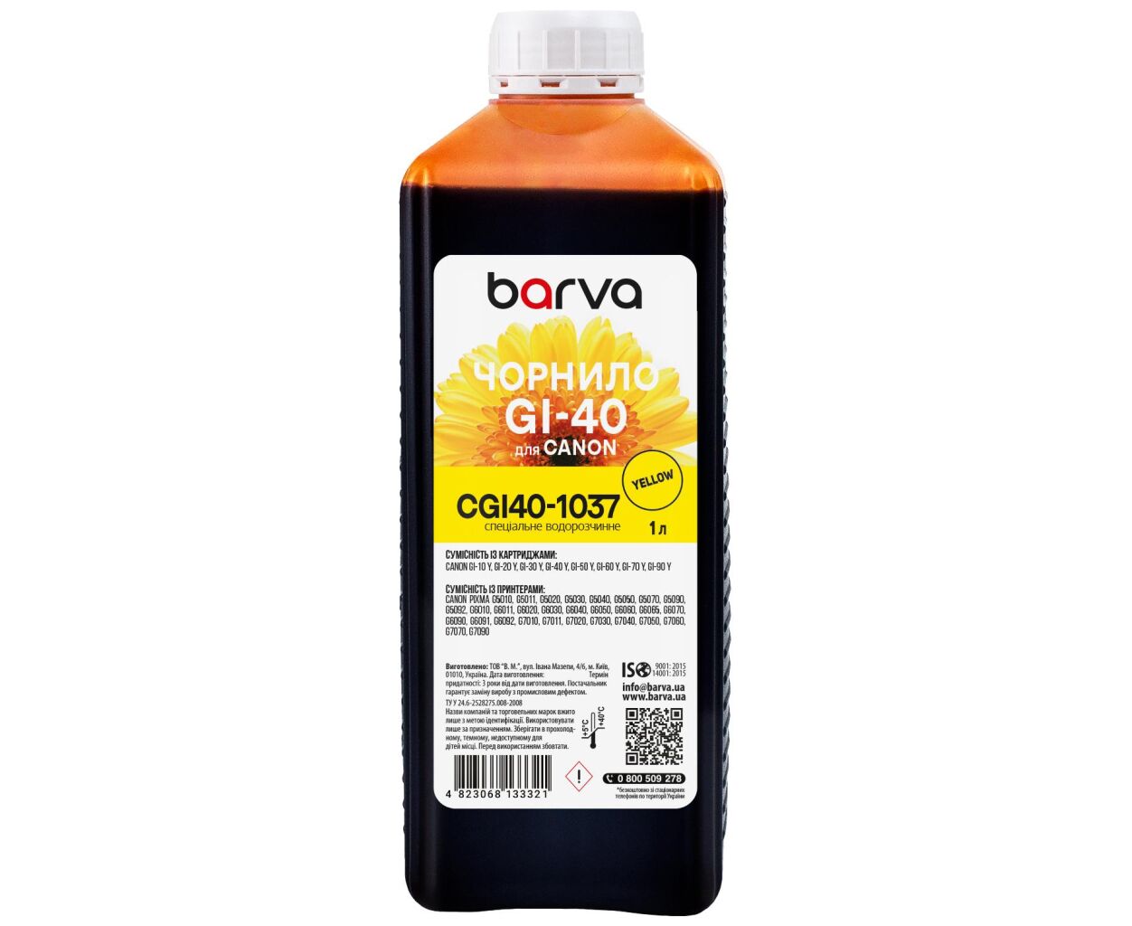 Характеристики Чернила Barva Canon GI-40 1 л, yellow special (CGI40-1037)