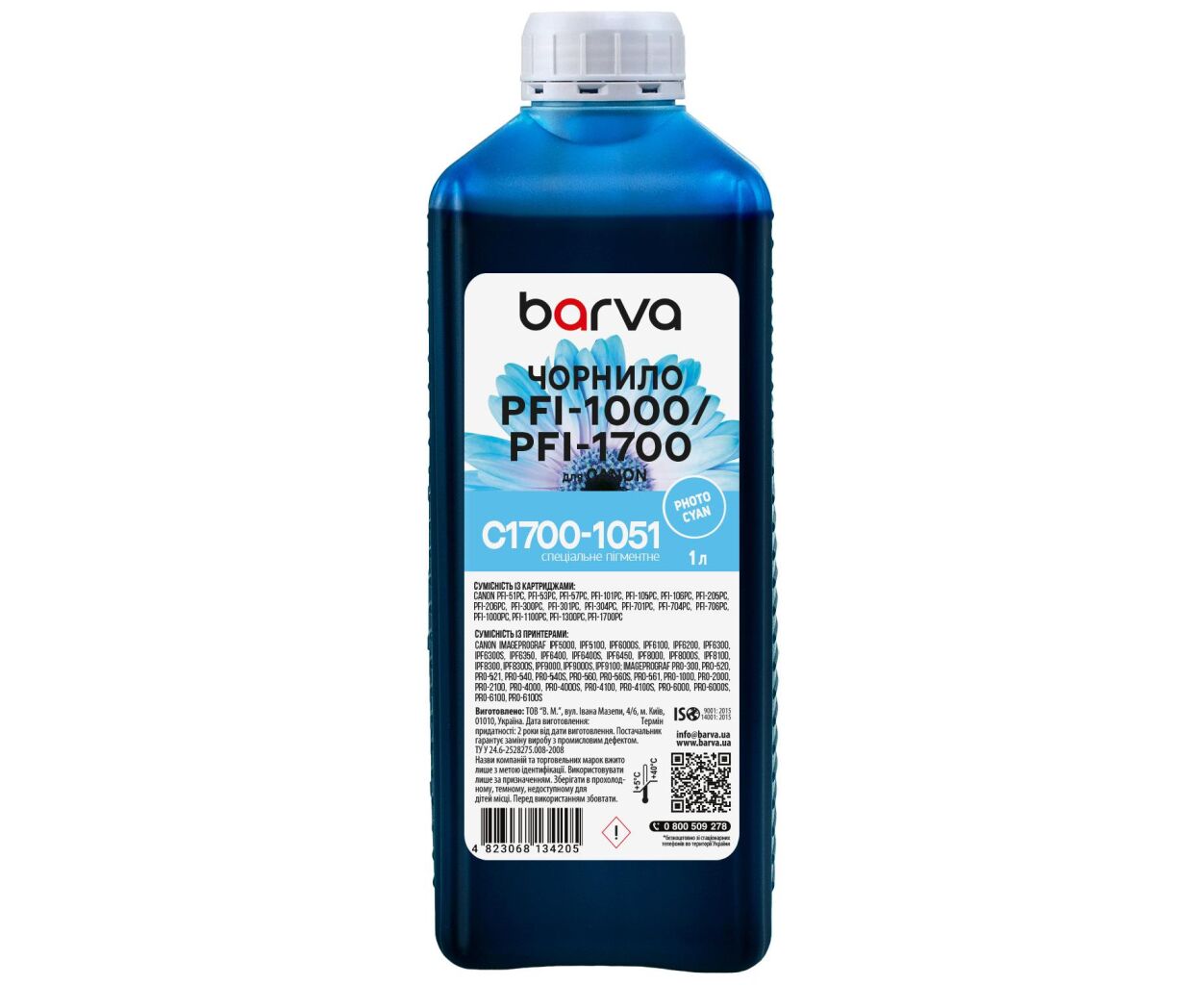 Чернила Barva Canon PFI-1000/PFI-1700 1 л, special, pigmented photo cyan (C1700-1051)