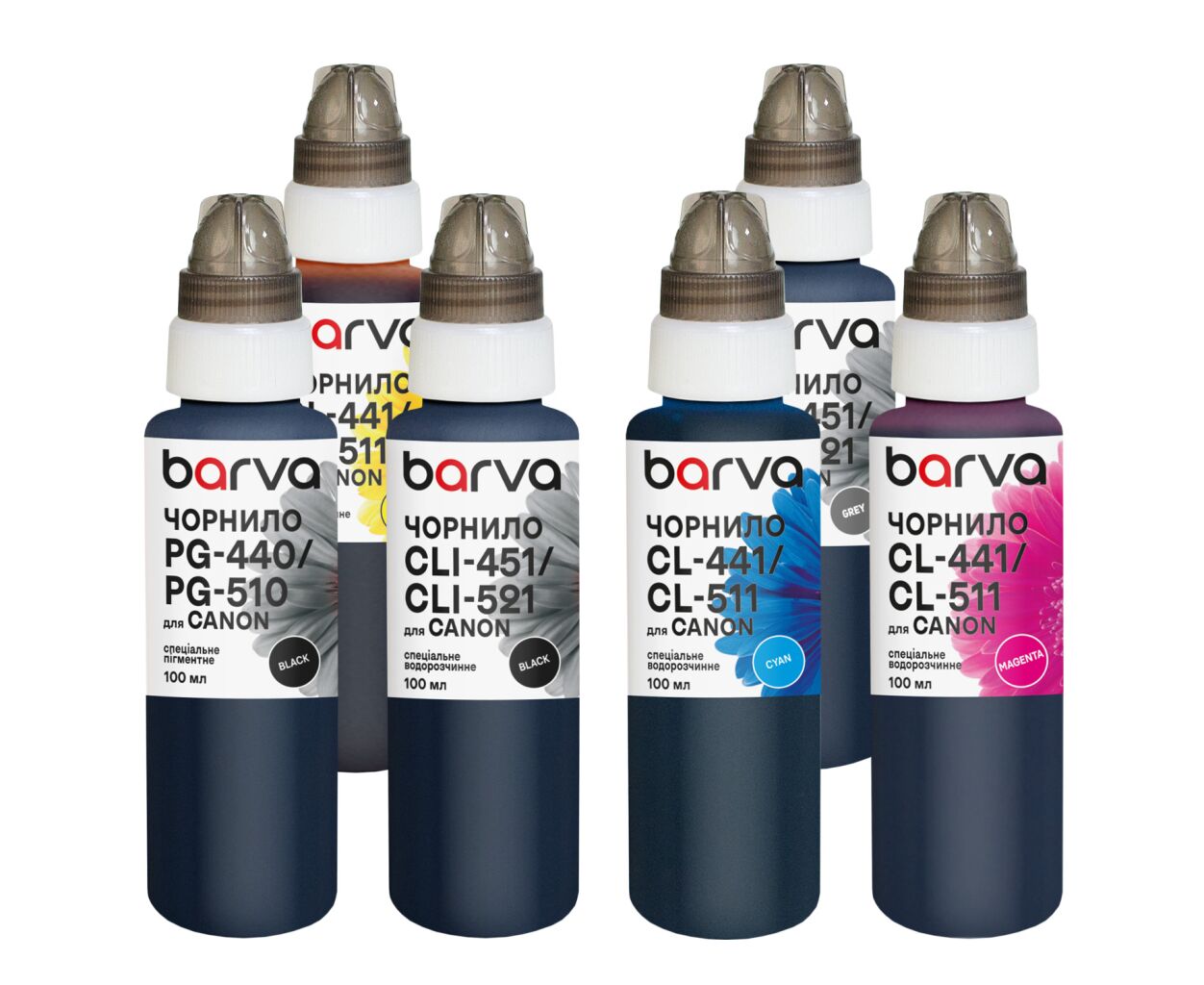 Чернила Barva Canon PGI-520PGBK pigm + CLI-521BK/C/M/Y/GY 6x100 мл special (CPGI520-100-3MP)