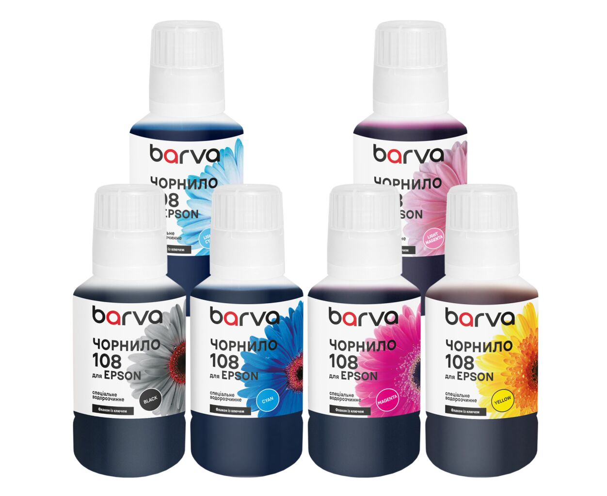 Описание Чернила Barva Epson 108 6x140 мл, BK/C/M/Y/LC/LM, special, OneKey (E108-140-MP)