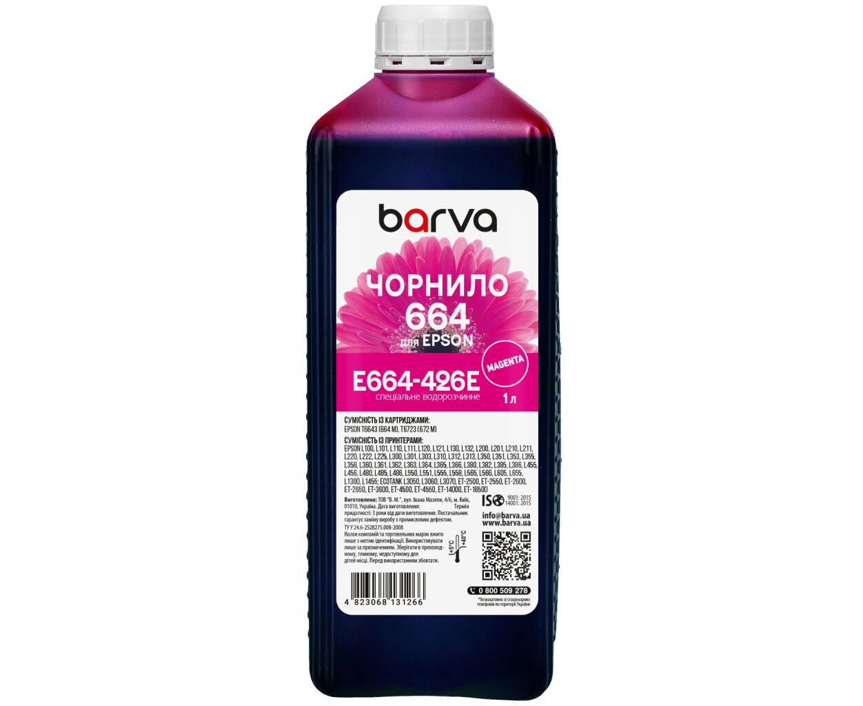 Характеристики Чернила Barva Epson 664 1 л, special magenta (E664-426e)