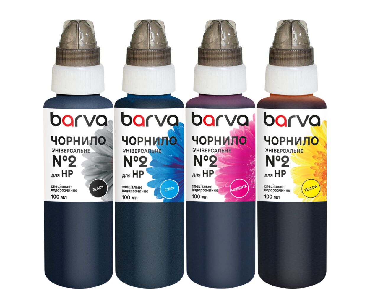 Описание Чернила Barva HP 2 4х100 мл, universal BK/C/M/Y (HU2-100-MP)