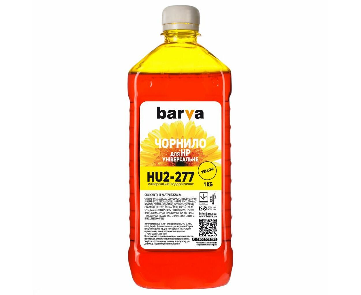 Характеристики Чернила Barva HP Universal-2 1кг YELLOW (HU2-277)