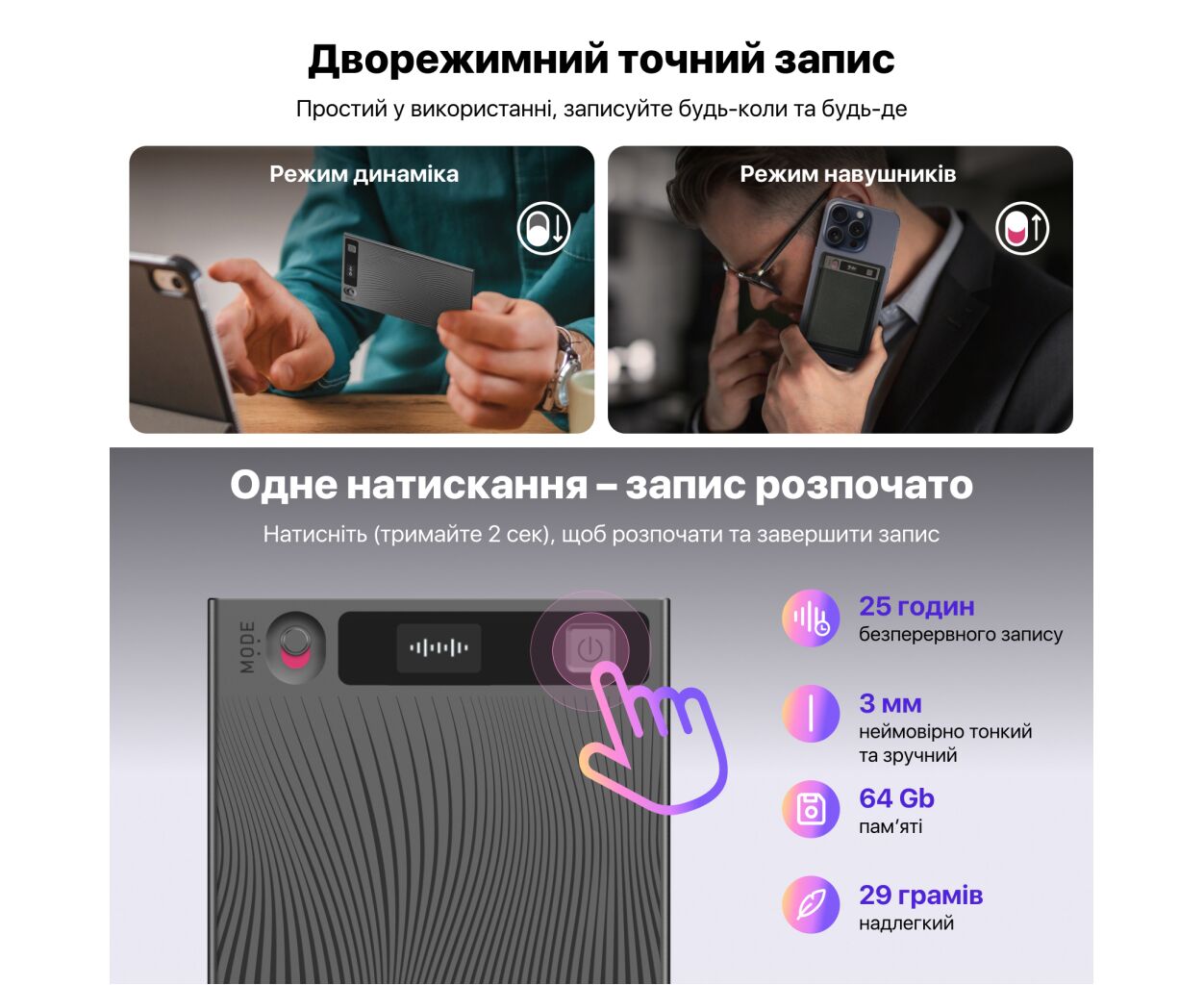 Отзывы о Цифровой диктофон Mobvoi TicNote with IA Shadow 64GB Black (NE-79) от реальных покупателей