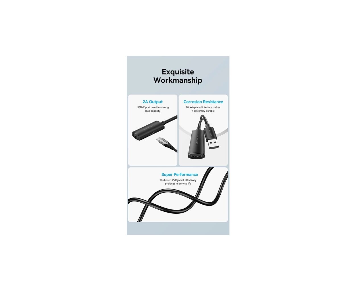 - Возможность дополнительного питания: Конструкция удлинителя подразумевает наличие интегрированного порта USB-C на корпусе приемного гнезда, что значительно расширяет совместимость кабеля с разными типами оборудования. Хотя для маломощных устройств, таких как мыши или клавиатуры, питания от компьютера вполне достаточно, более требовательная техника нуждается в стабильном токе, который трудно передать на расстояние 10 метров без потерь. Подключение внешнего источника питания через порт гарантирует, что даже энергоемкие гаджеты будут работать на полную мощность без сбоев и отключений.