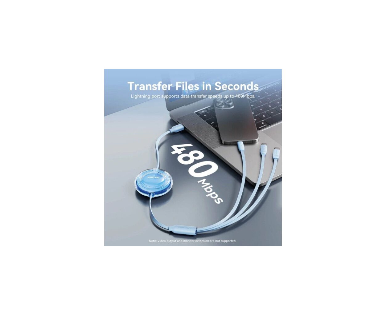 Дата кабель USB 2.0 AM to 2xUSB-C + Lightning 1.0m 3.5A retractable VENTION (TRJBBE)