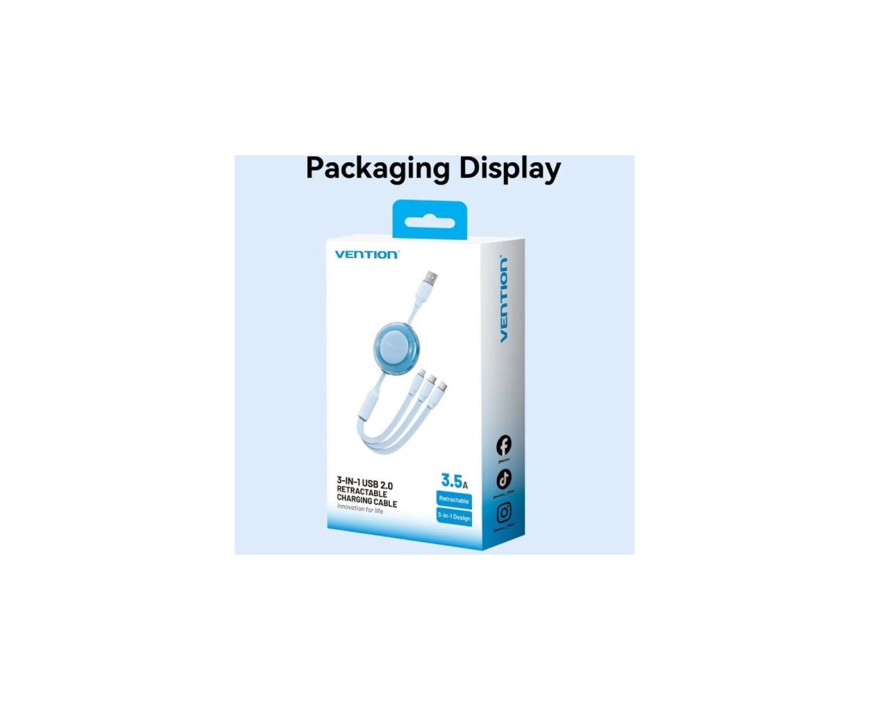 Описание Дата кабель USB 2.0 AM to 2xUSB-C + Lightning 1.0m 3.5A retractable Vention (TRJBBE)