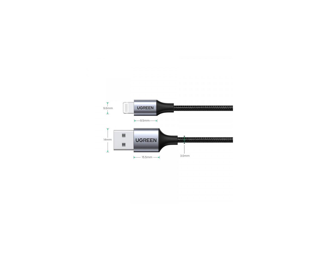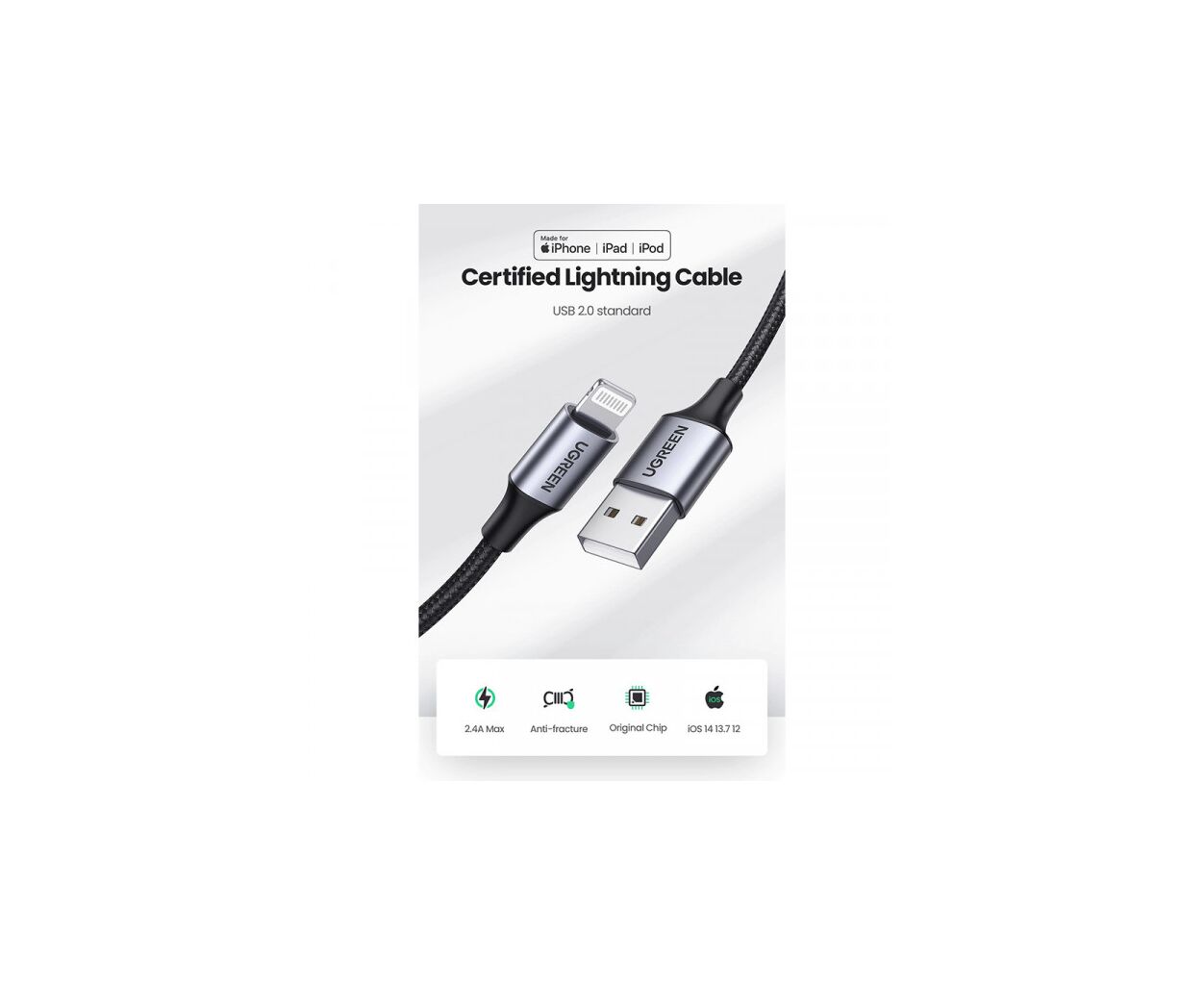 Дата кабель USB 2.0 AM to Lightning 1.0m 2.4A US199 black UGREEN (60156)