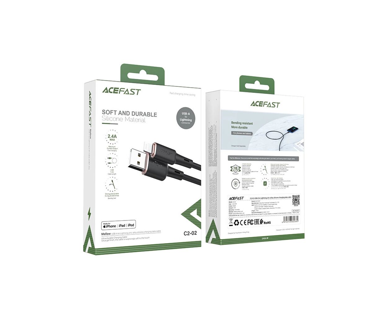 Дата кабель USB 2.0 AM to Lightning 1.2m 2.4A silicone C2-02 black Acefast (AFC2-02B)