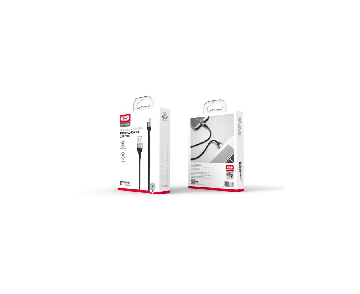 Дата кабель USB 2.0 AM to Micro 5P 1.0m 2.4A double-sided NB188 gray XO (6920680879717)