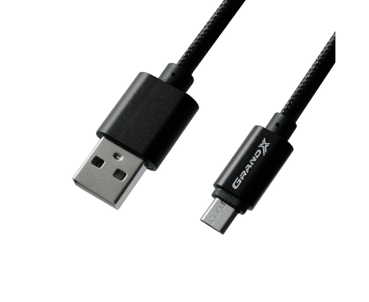 Дата кабель Grand-X USB - micro USB, Cu, 2.1A, Black/Black, 1m (FM01BB)