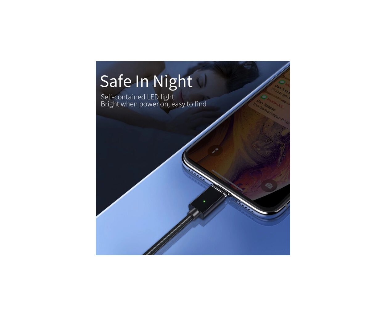 - Магнитный коннектор для безопасного использования. Защищает порт телефона или ноутбука от загрязнения и износа