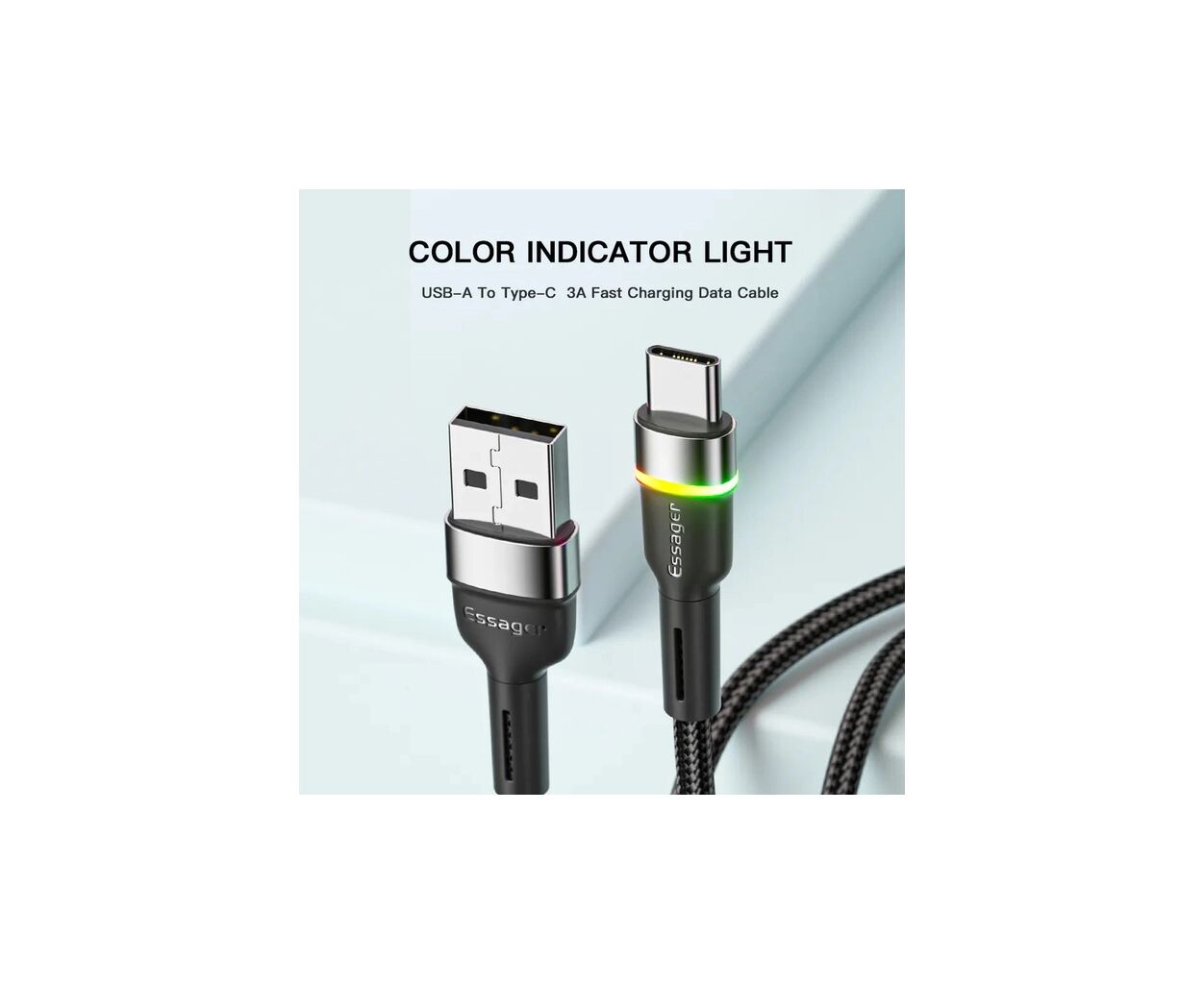Характеристики Дата кабель USB 2.0 AM to USB-C 0.5m 3A LED black Essager (EXCT-XCDB01)