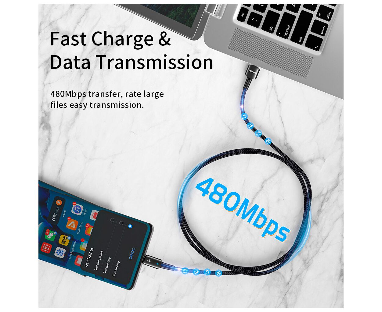 Характеристики Дата кабель USB 2.0 AM to USB-C 1.0m 100W black Essager (EXC7A-CG01-P)
