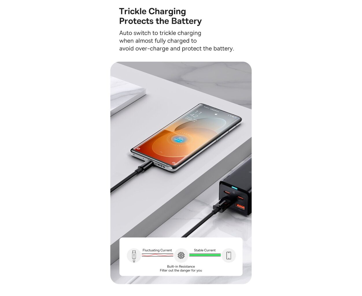 - Интерфейс: USB-A к USB-C, что обеспечивает совместимость со многими зарядными устройствами и адаптерами.
