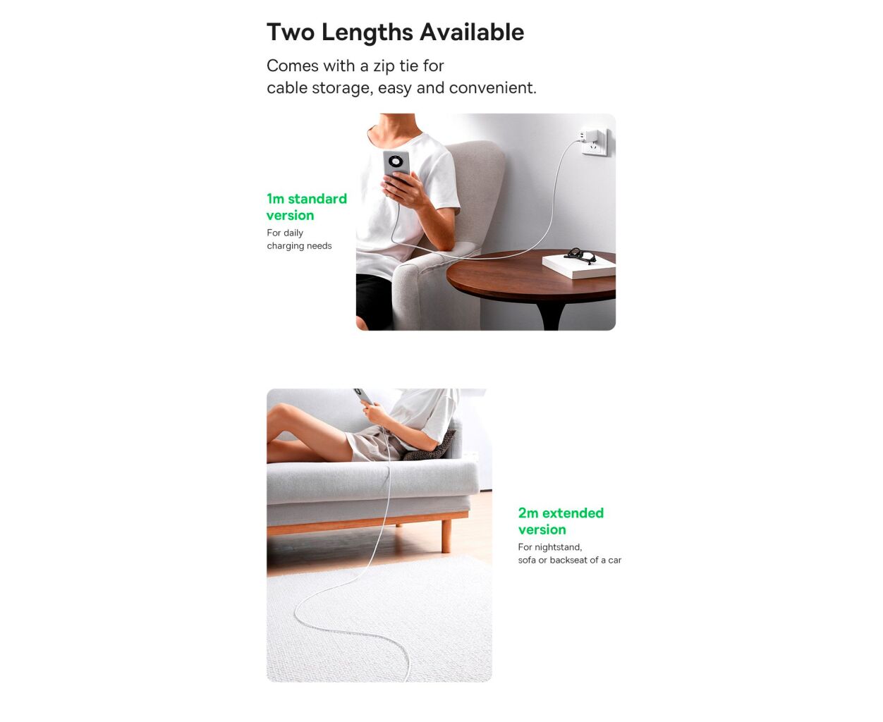 - Длина: 2 метра. Позволяет удобно пользоваться устройством во время зарядки.