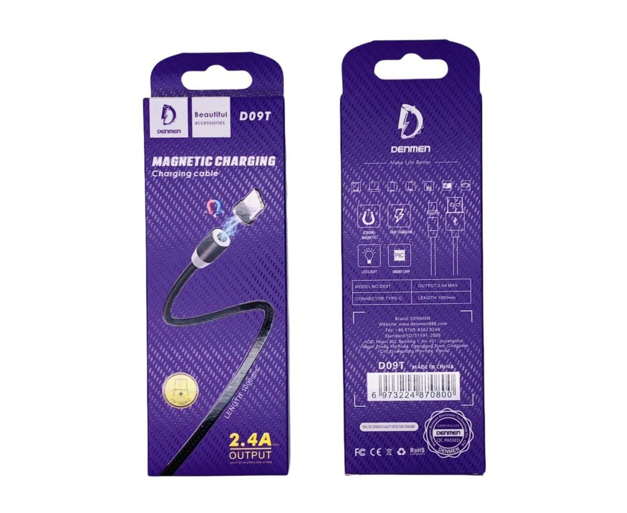 Описание Дата кабель USB 2.0 AM to USB-C magnetic black Denmen (DN-D09T-BK)