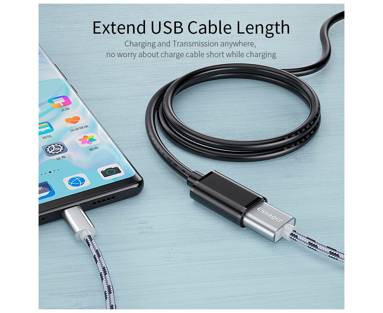 - Высокая скорость передачи данных. Стабильный и быстрый процесс передачи, намного быстрее, чем кабель USB 2.0, что делает удлинительный кабель Essager USB 3.0 хорошим и практичным инструментом передачи данных;