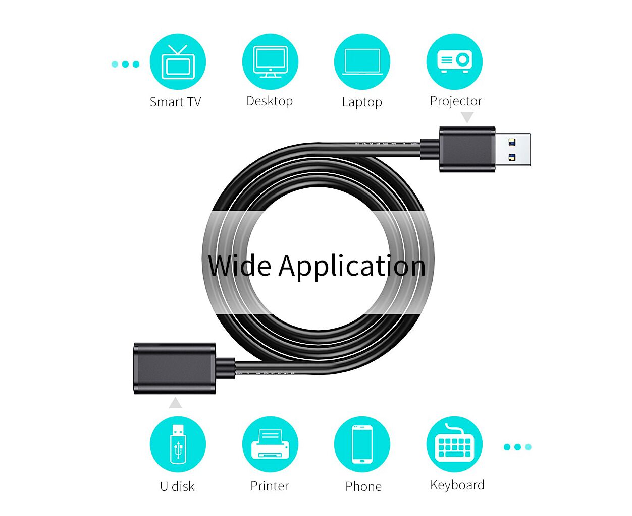 - Высокая скорость передачи данных. Стабильный и быстрый процесс передачи гораздо быстрее, чем кабель USB 2.0, что делает удлинительный кабель Essager USB 3.0 хорошим и практичным инструментом передачи данных.