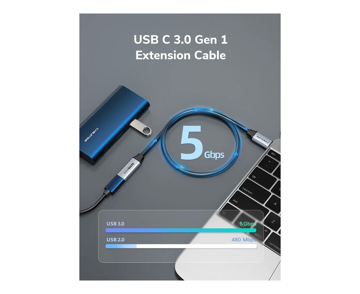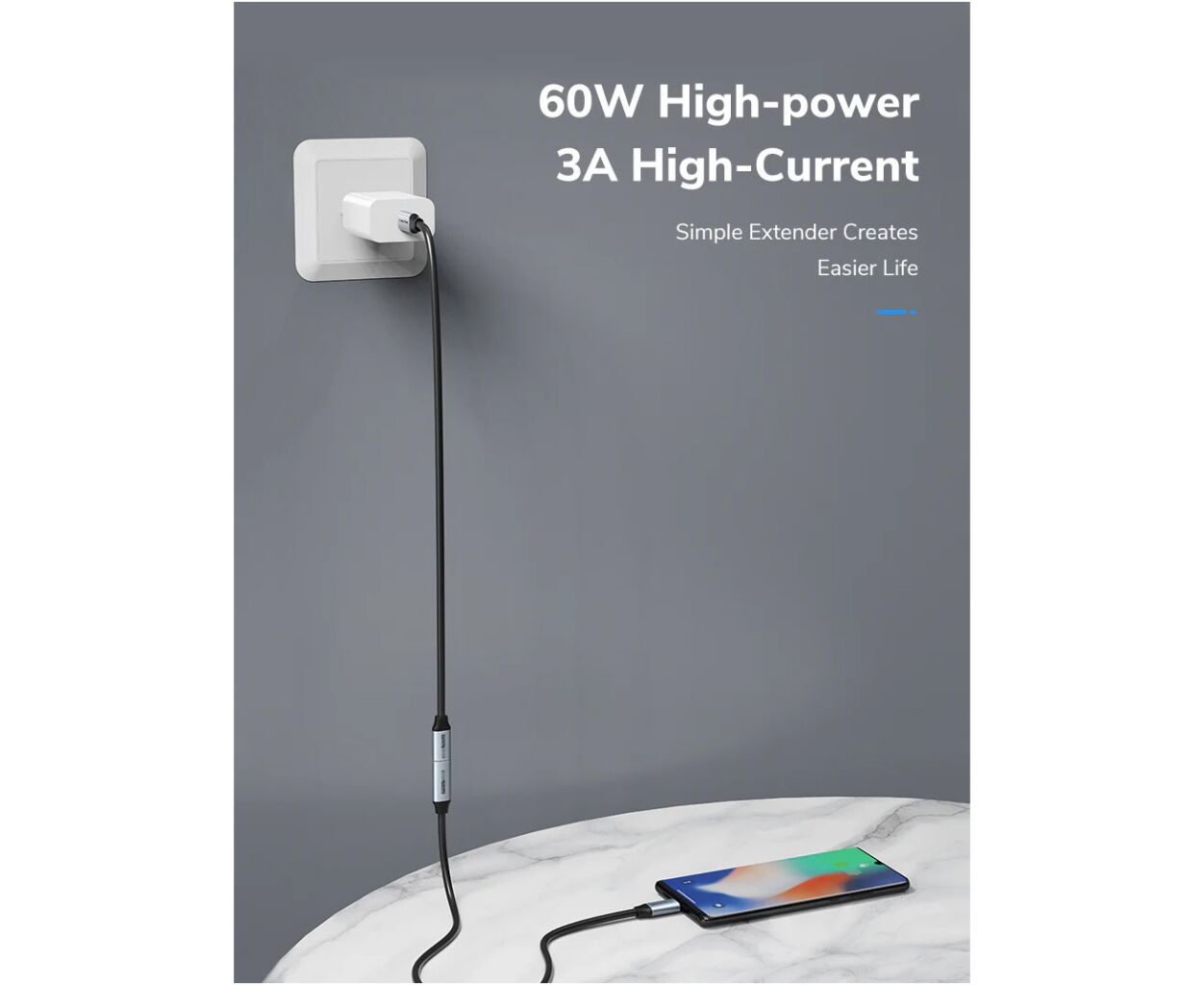 Кабель забезпечує швидку передачу даних 5 Гбіт/с, підтримує швидку зарядку потужністю 60 Вт і виводить відео- та аудіосигнал. Це кабель живлення і багатопортовий подовжувач, призначений для захисту роз'ємів вашого комп'ютера або смарт-пристрою від зносу.