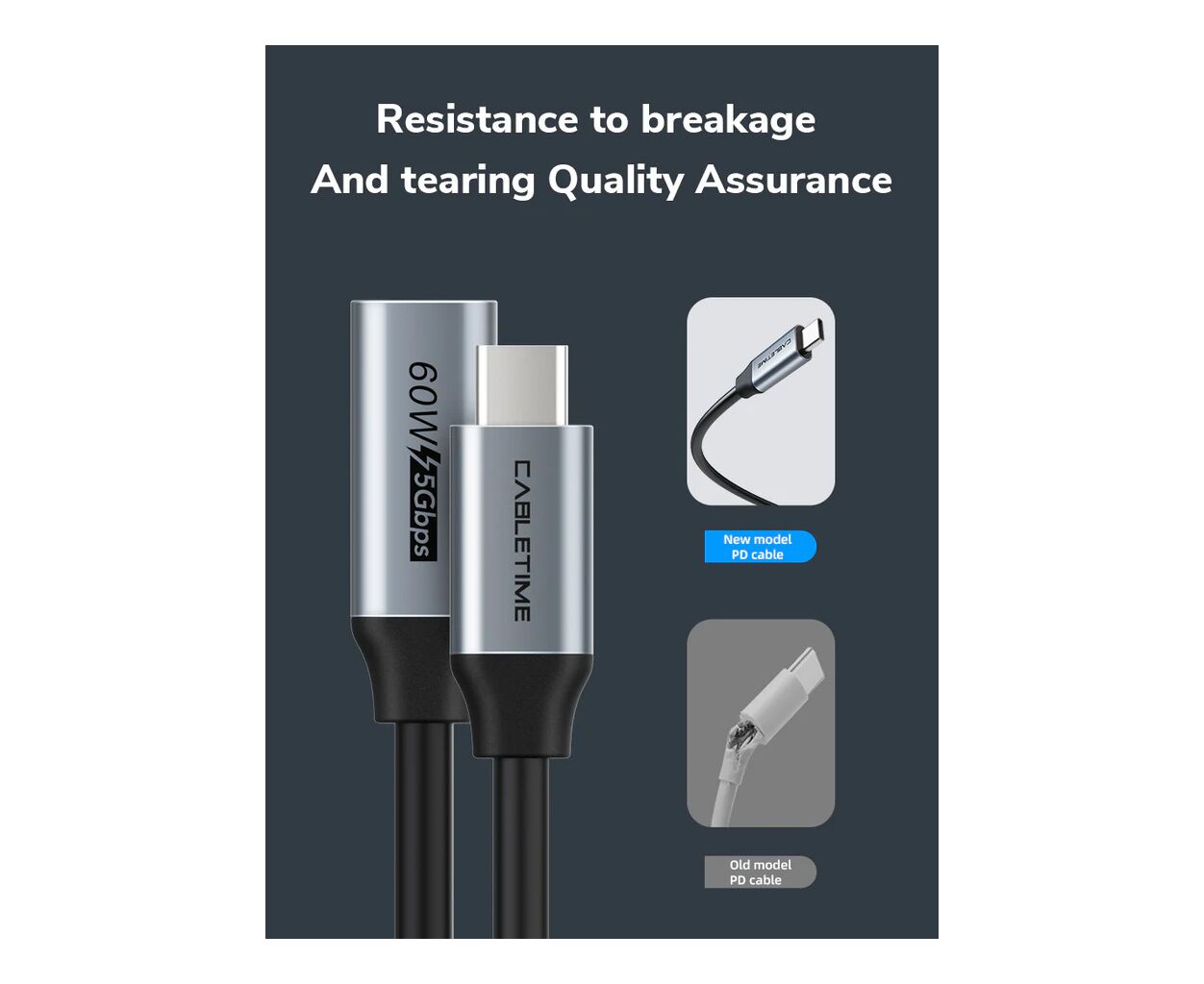Дата кабель USB-C M to USB-C F 0.5m 5Gbps 60W 4K60Hz Cabletime (CA913664)