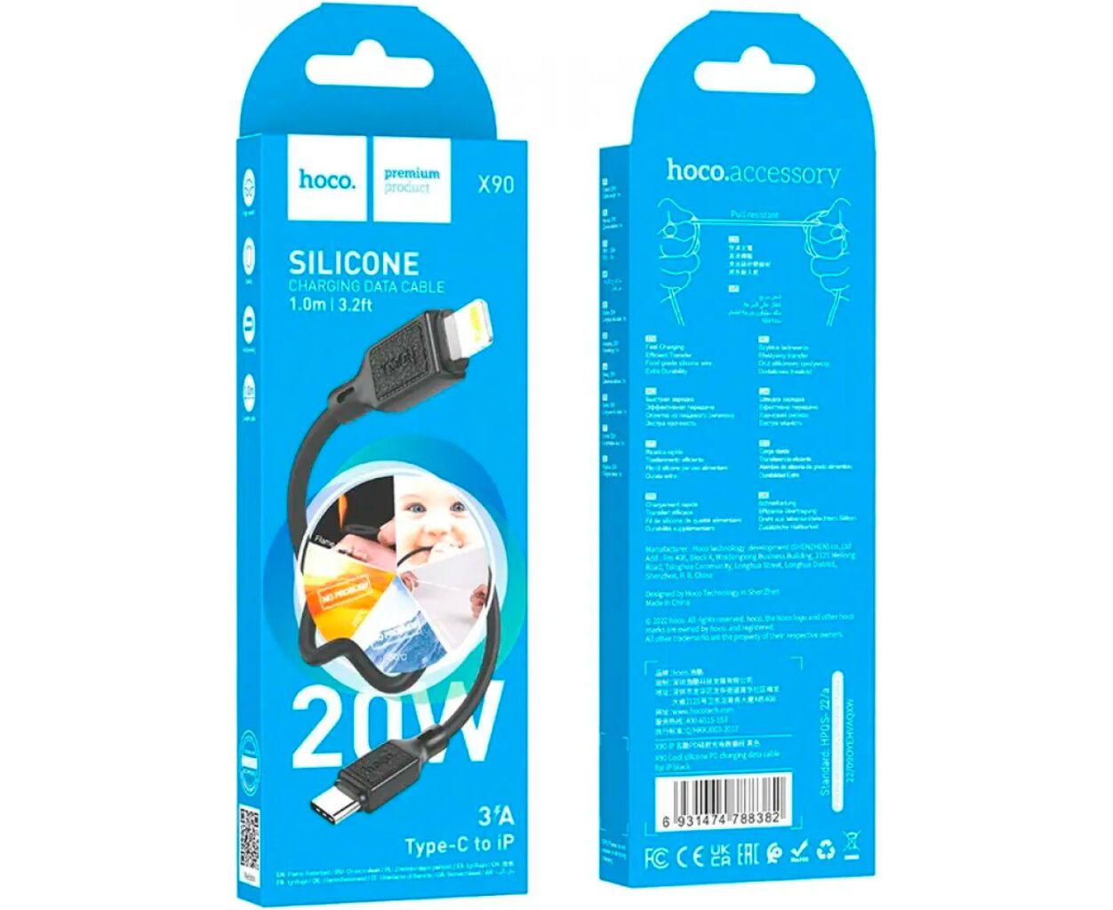 Описание Дата кабель USB-C to Lightning 1.0m Cool silicone PD 20W X90 black HOCO (6931474788382)