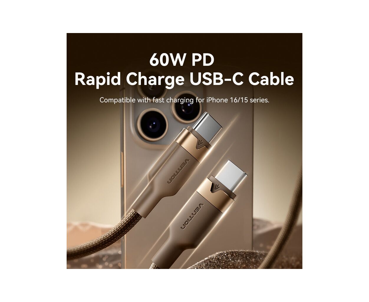 Дата кабель USB-C to USB-C 1.0m 3A aluminum gold Vention (TRDJF)