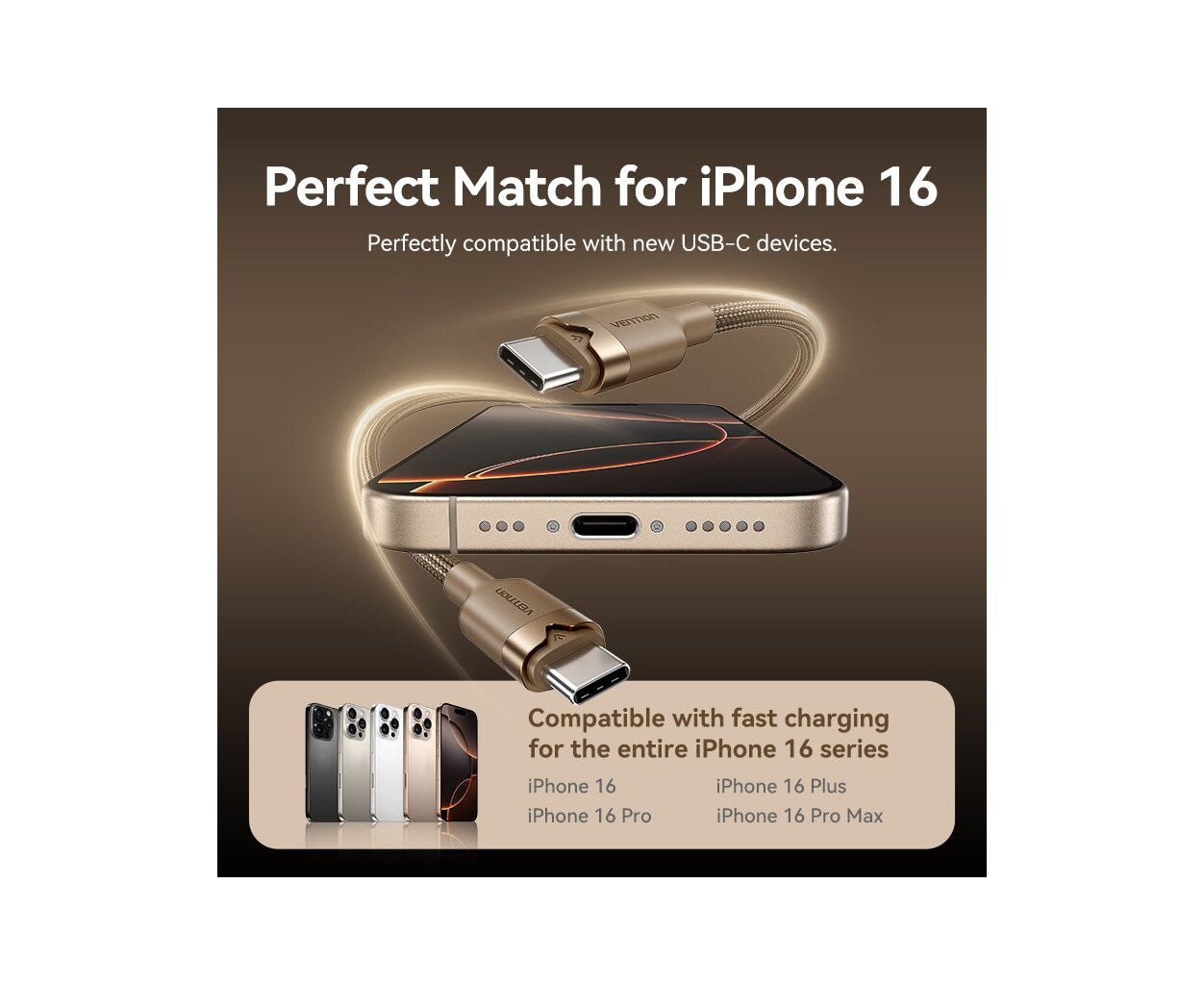 Описание Дата кабель USB-C to USB-C 1.0m 3A aluminum gold Vention (TRDJF)