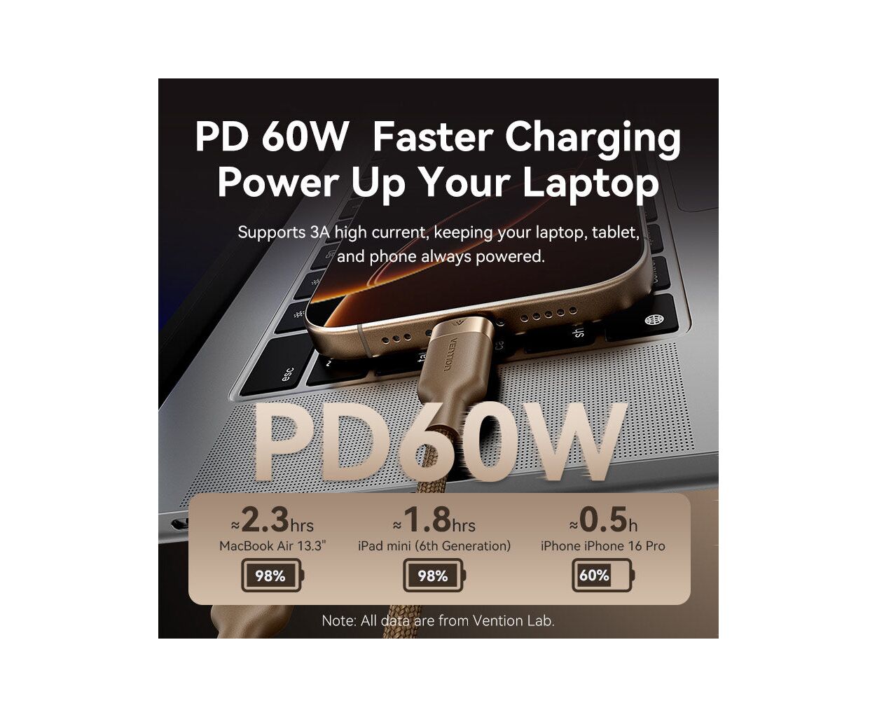 Кабель для передачи данных Vention также поддерживает Quick Charge 4.0, расширяя его совместимость с другими устройствами, такими, как мобильные телефоны. С помощью этого кабеля можно полностью зарядить свои устройства за короткое время. Поверхностная защита кабеля для передачи данных из высококачественного материала TPE, который мы никогда не сломаем.