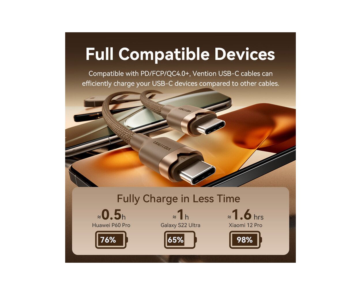 Характеристики Дата кабель USB-C to USB-C 1.0m 3A aluminum gold Vention (TRDJF)