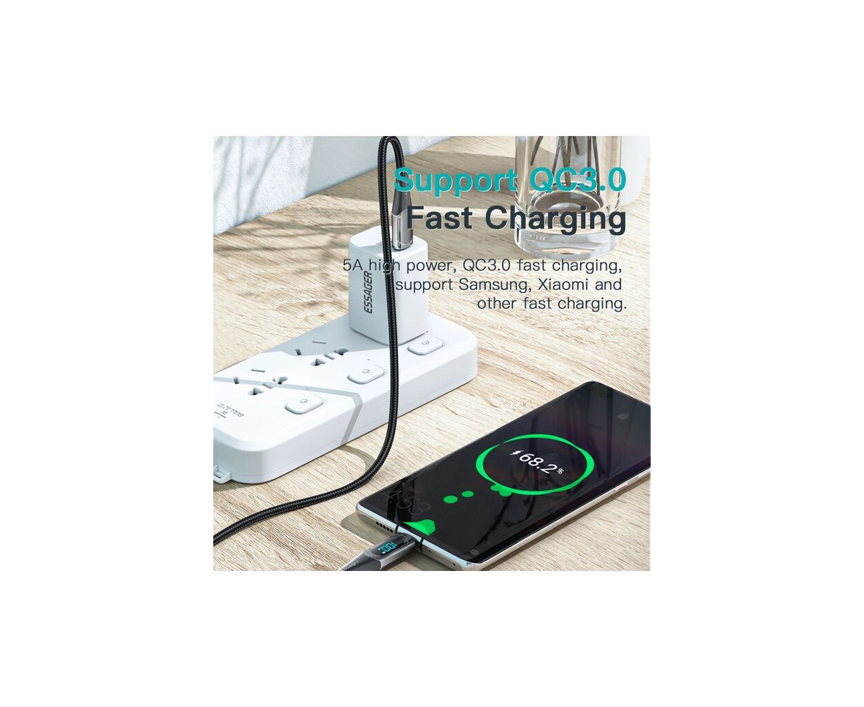 Кабель Essager в нейлоновой оплетке премиум-класса с разъемом, усиленным цинковым сплавом, обеспечивает долгий срок службы и отсутствие запутывания. Конструкция с защитой от натяжения и прочный алюминиевый экран делают кабель прочным и надежным.