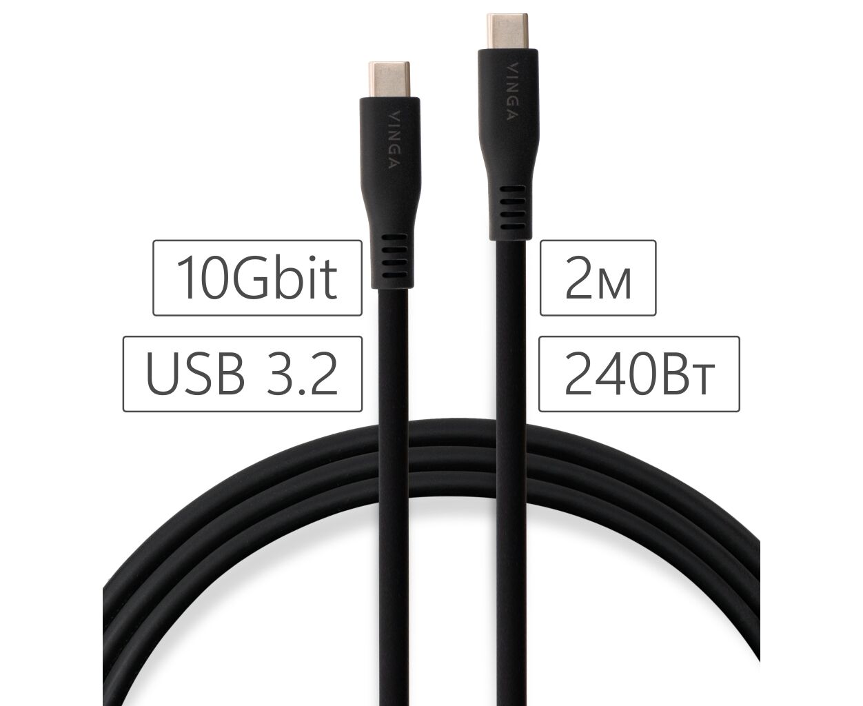 Описание Дата кабель USB-C to USB-C 2.0m UBS3.2 Gen2 10G 240W Chip Silicon Black Vinga (VCPDCCC3242SB)