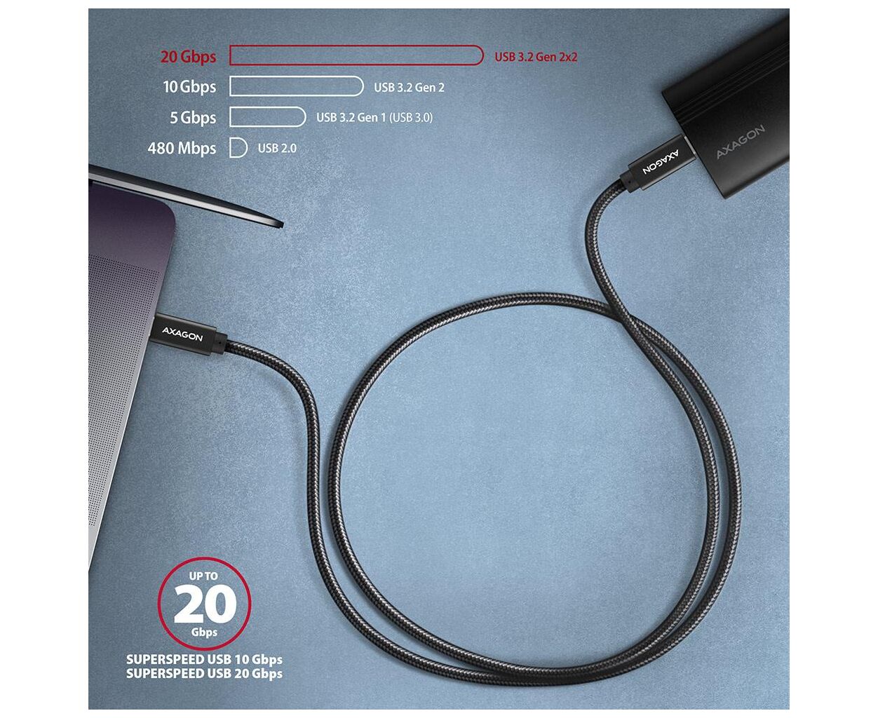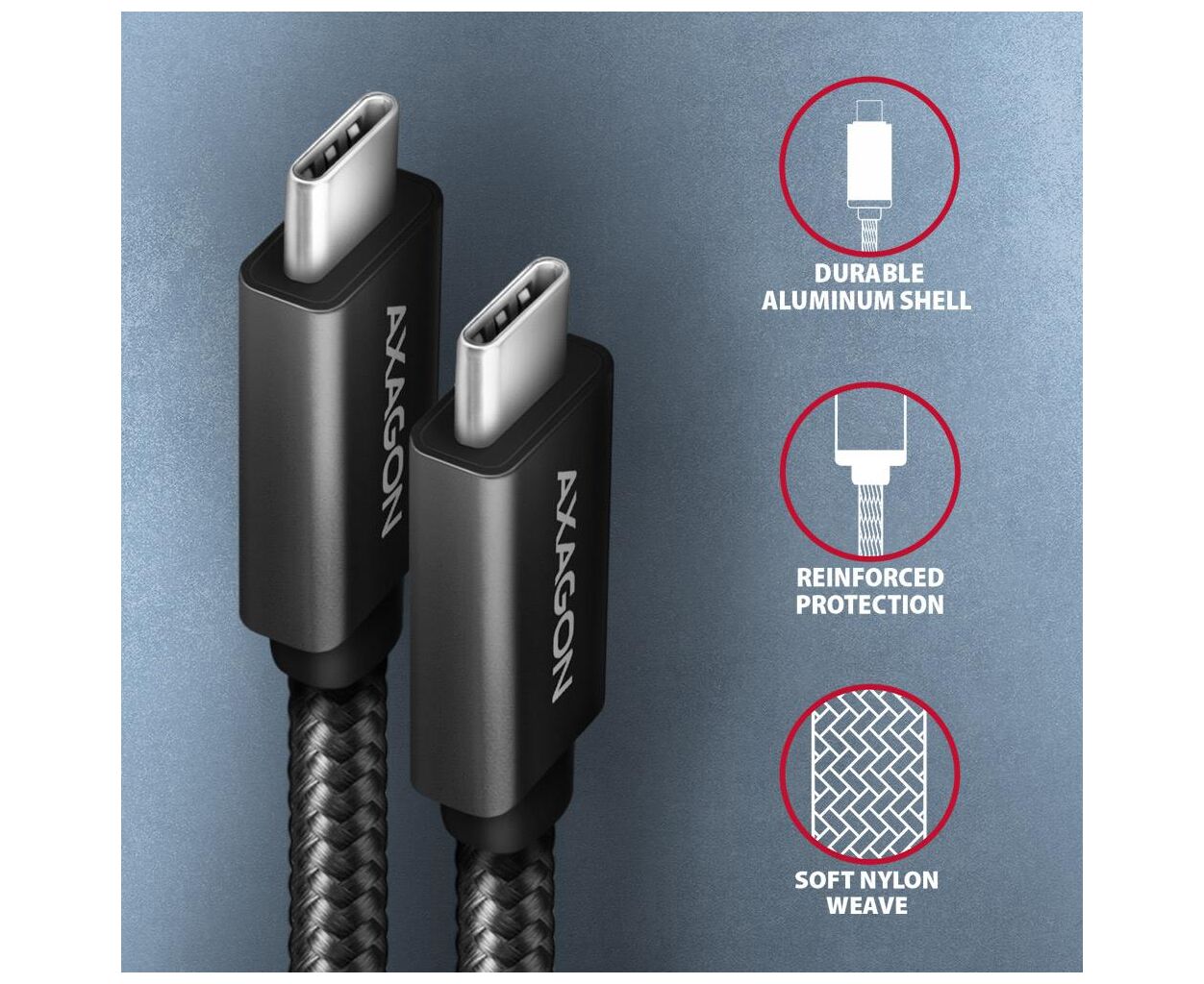 Дата кабель USB-C to USB-C 2.0m USB 3.2 Gen 2 PD 100W 5A 4K black AXAGON (BUCM32-CM20AB)