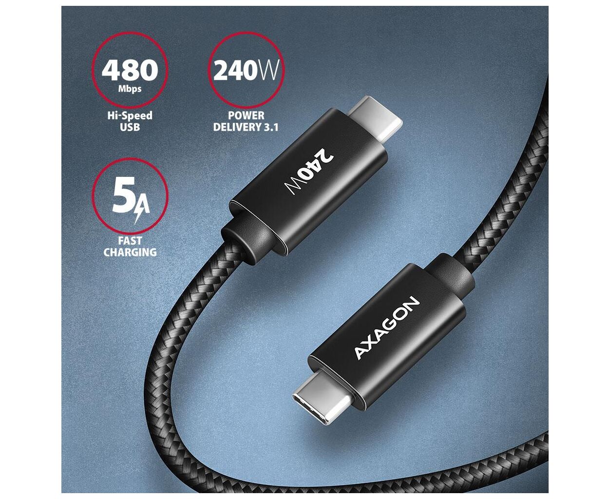 Дата кабель USB-C to USB-C 3.0m USB 2.0 PD 240W 5A black AXAGON (BUCM2-CM30AB)