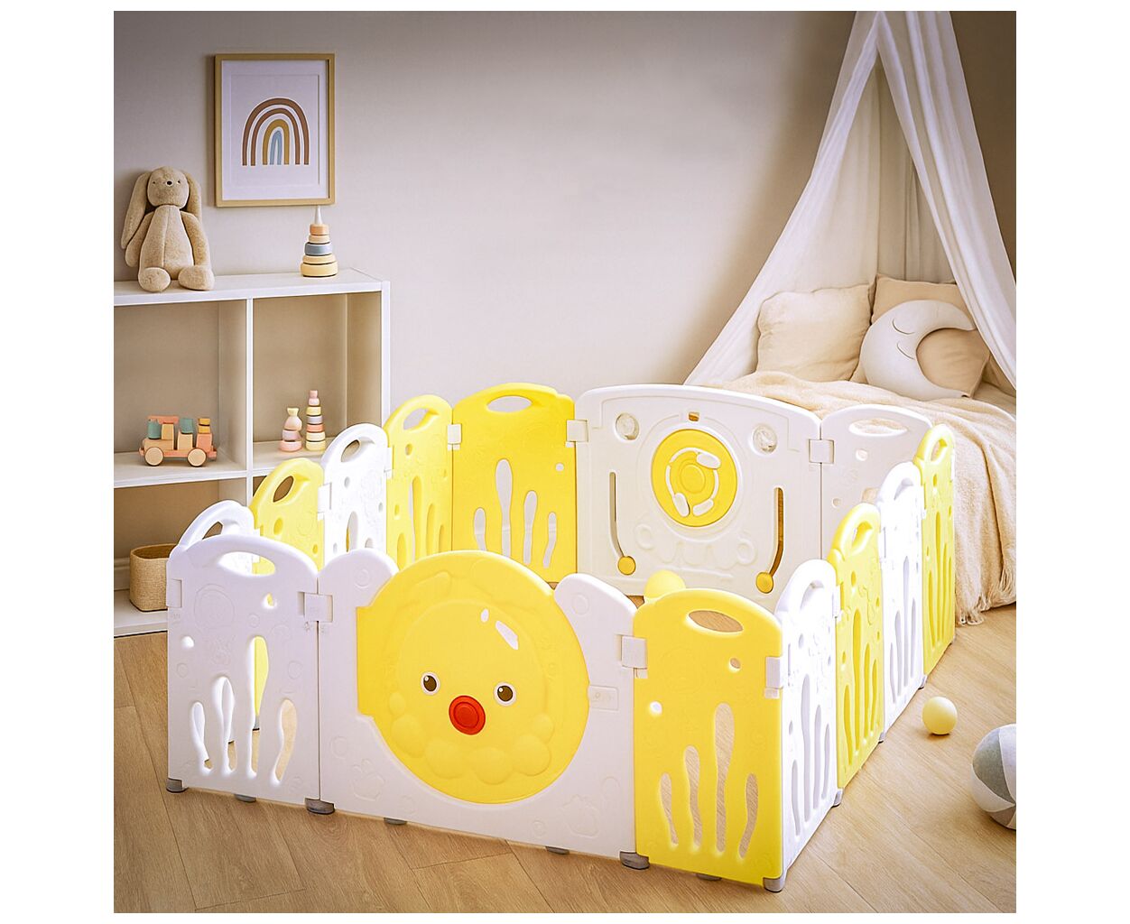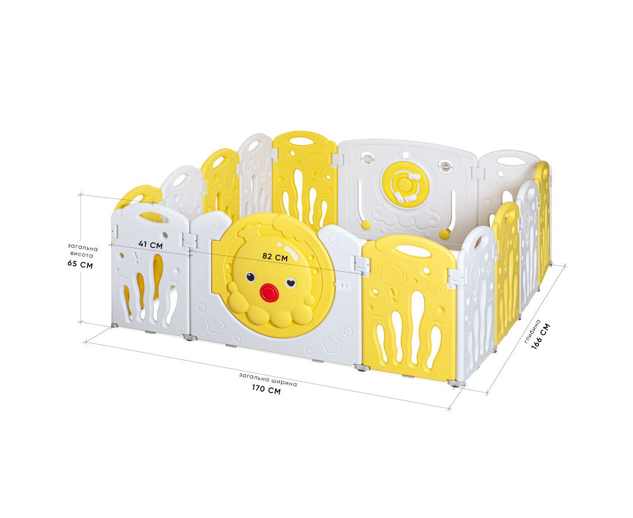 Тип - манеж-ограждение, Возрастная группа - от 3-х лет, боковая дверца, Цвет - белый, желтый
