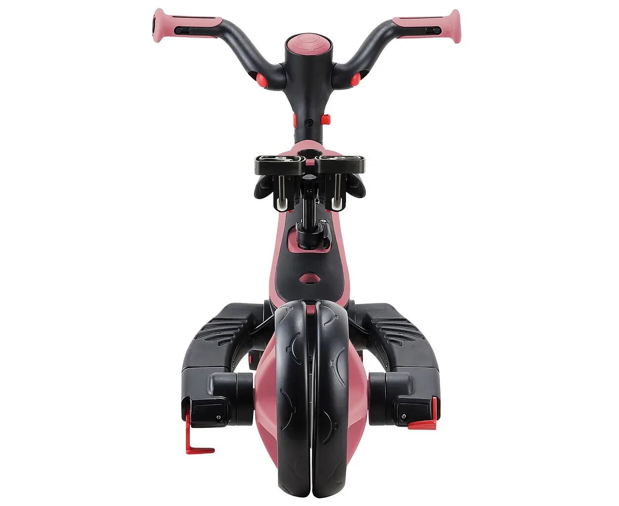 - 2 задних колеса легко соединяются в одно сдвоенное колесо в режиме беговела;